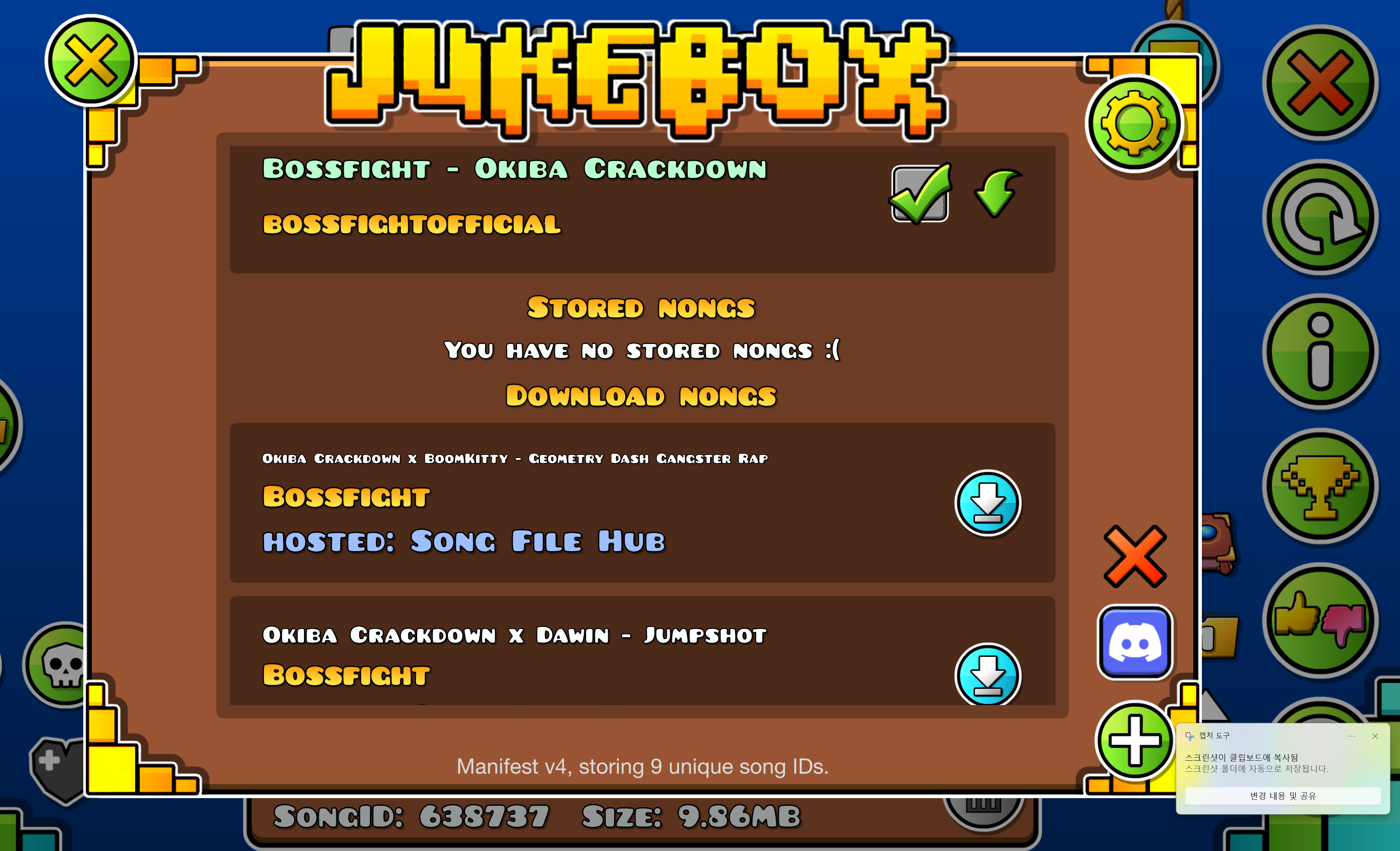 주크박스 내에서도 원곡 외에 다른 음악으로 선택할 수 있습니다.